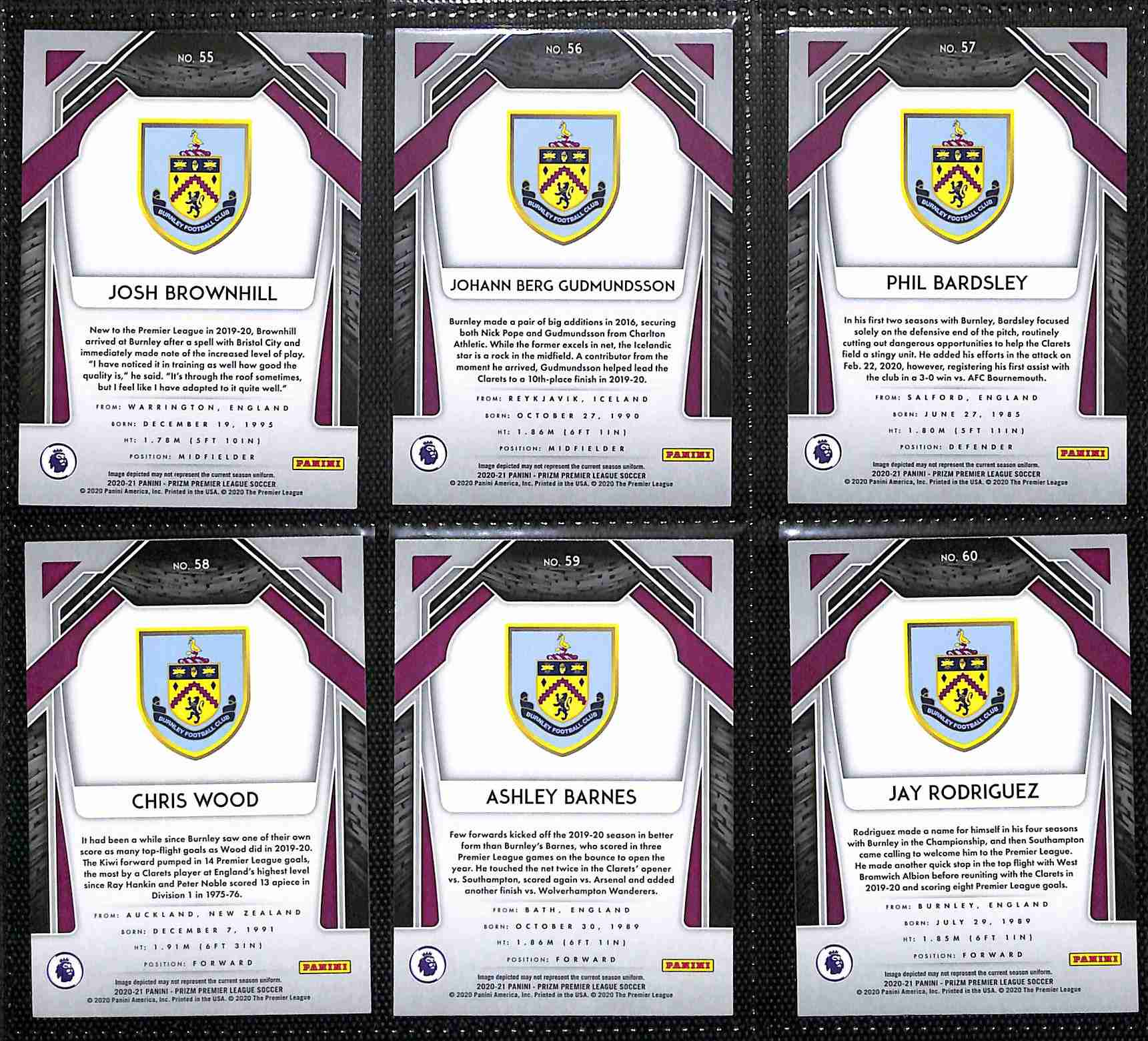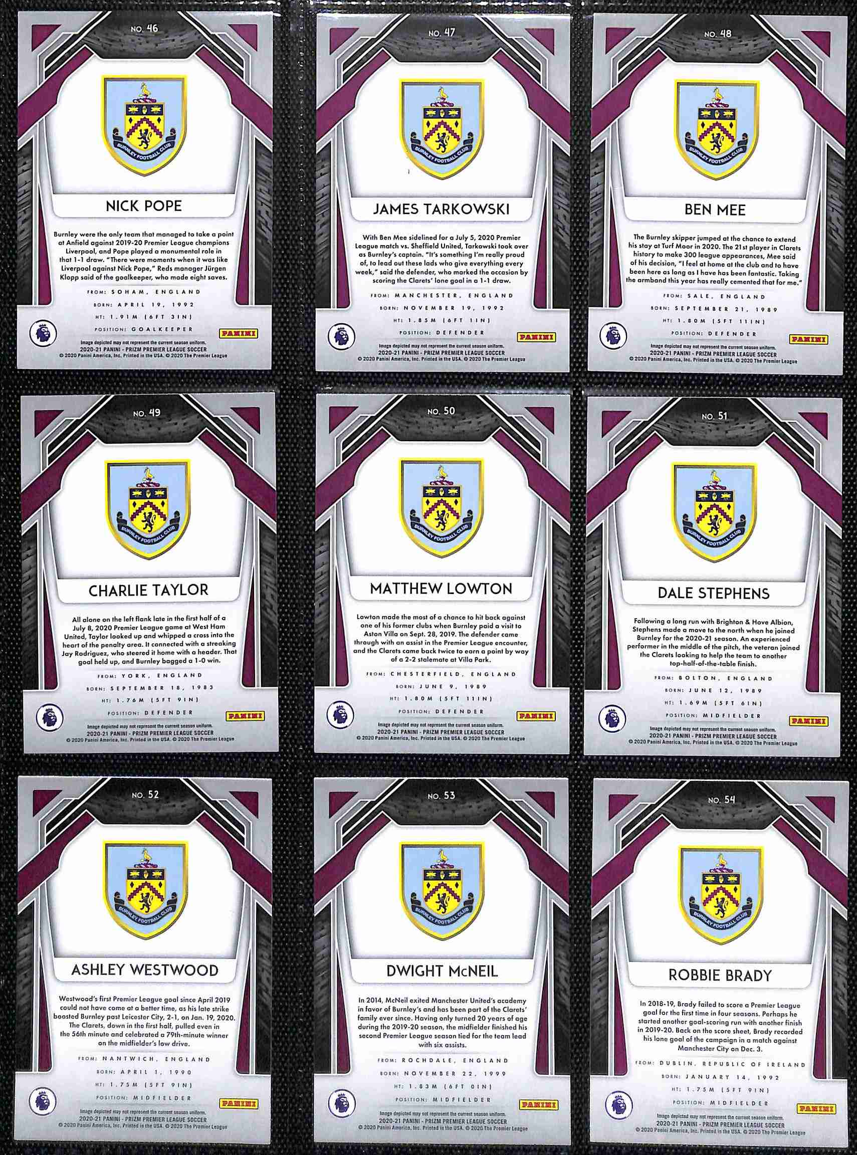 - Complete base set of all Burnley players featured in the 2020–21 Prizm release