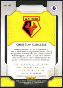 Christian Kabasele #107 – Watford Panini Prizm Base Card 2019-20