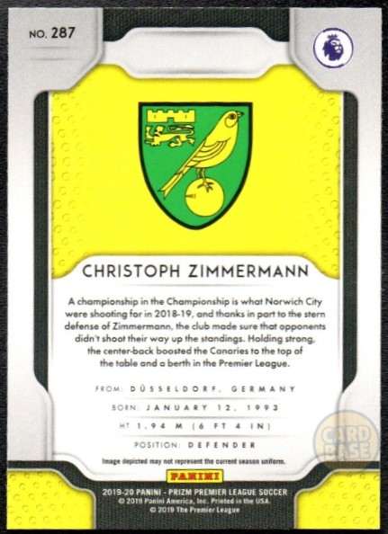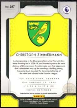 Christoph Zimmermann #287 – Norwich City Panini Prizm Base Card 2019-20