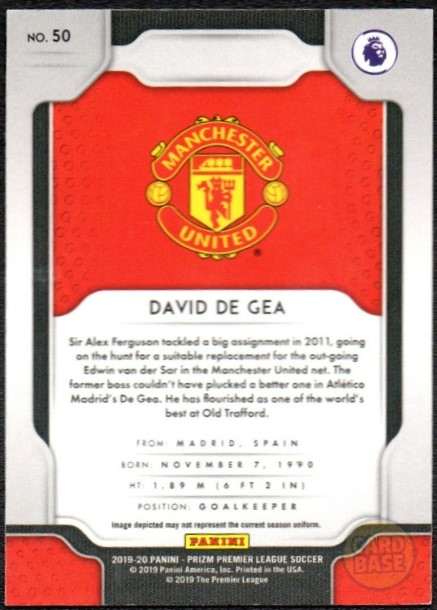 David de Gea #50 – Manchester United Panini Prizm Base Card 2019-20