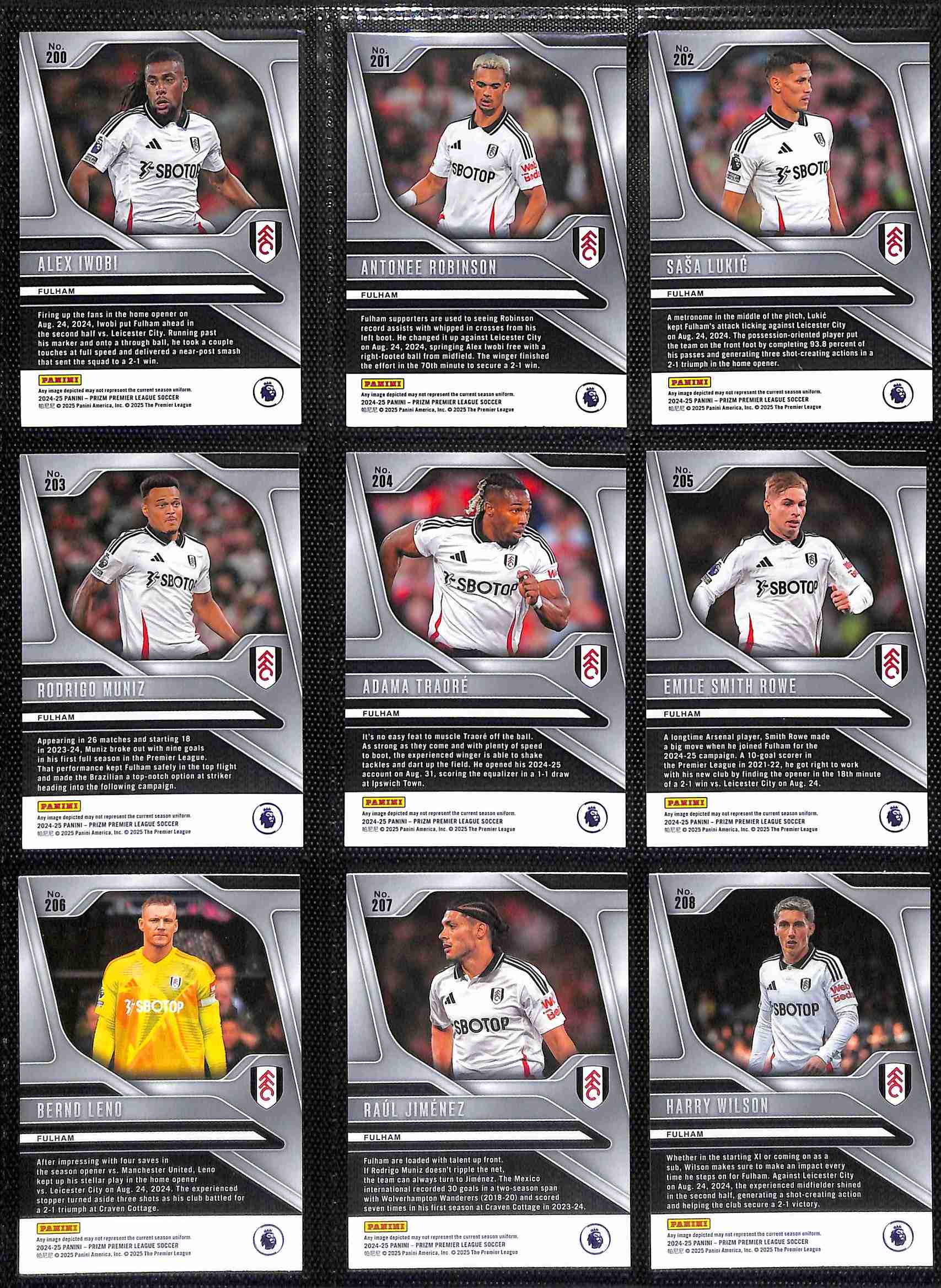 Fulham 2024–25 Panini Prizm Premier League Complete Base Set