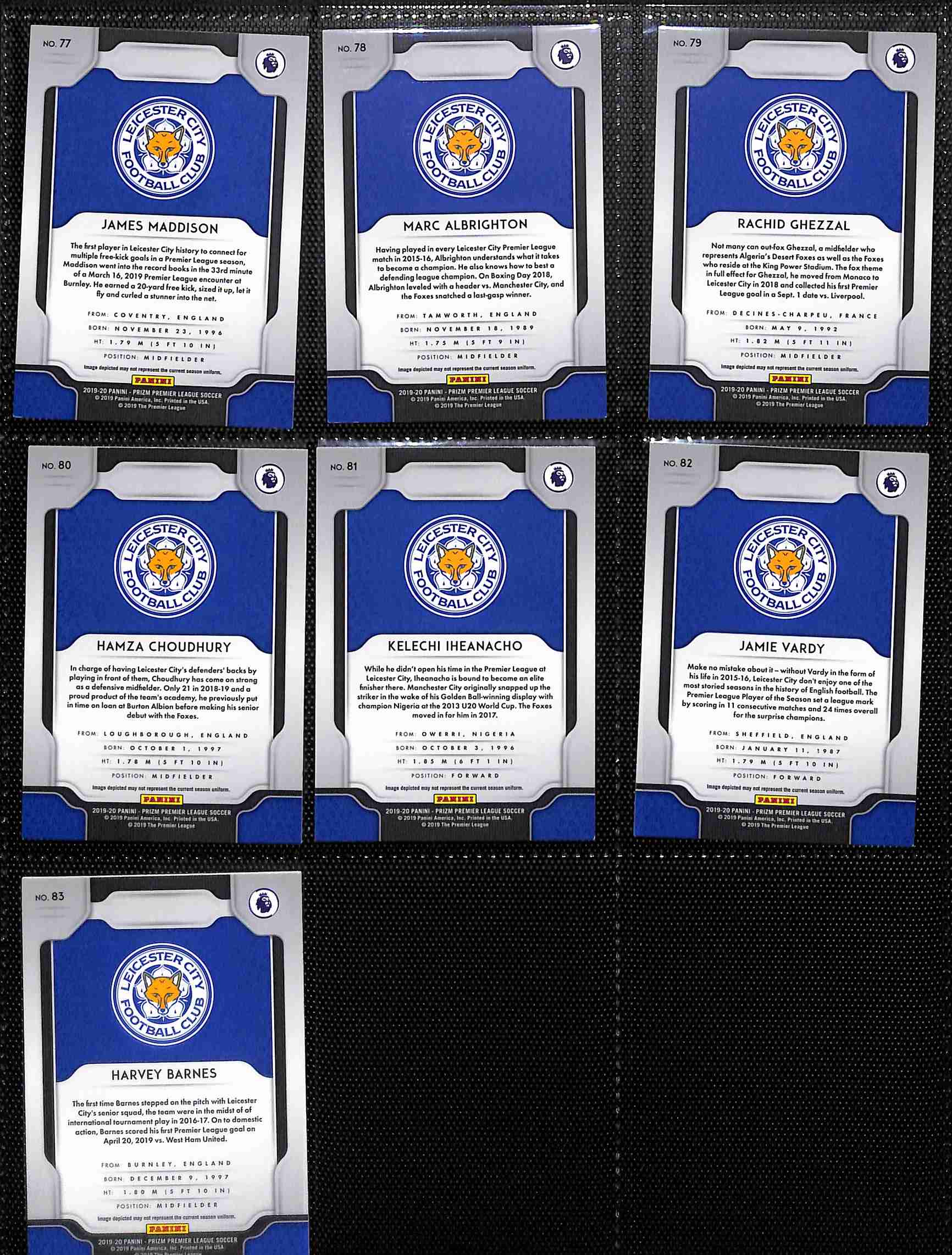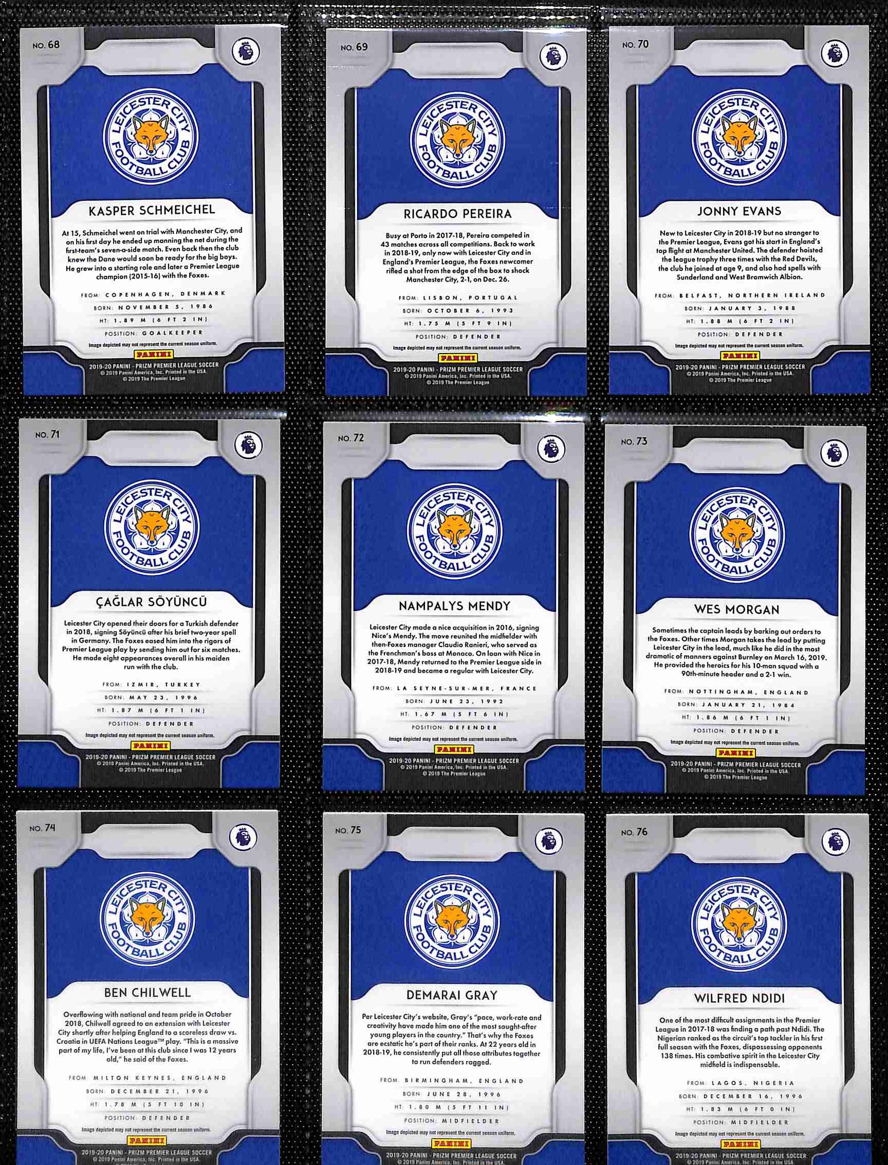 Leicester City 2019–20 Panini Prizm Premier League Complete Base Set