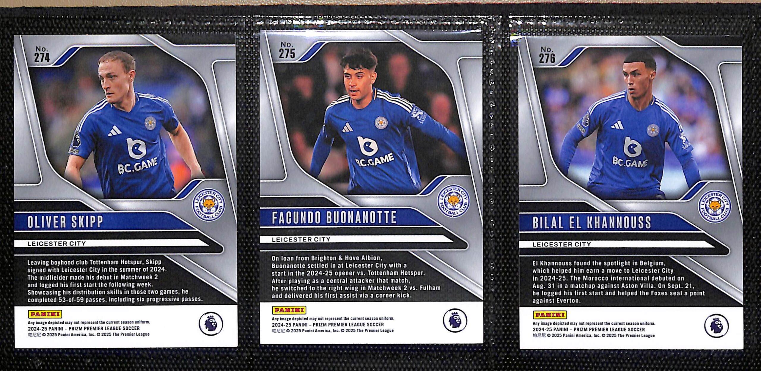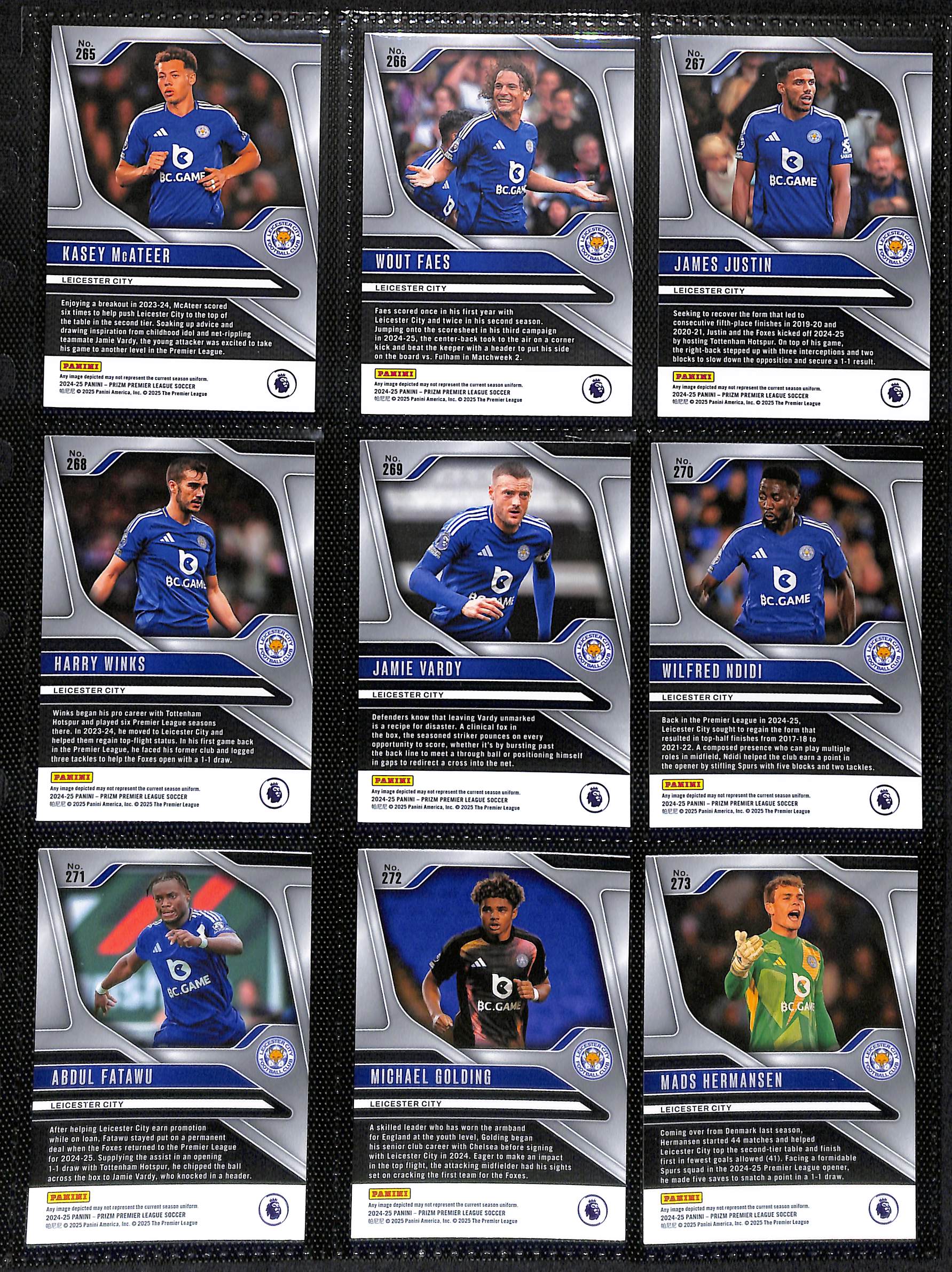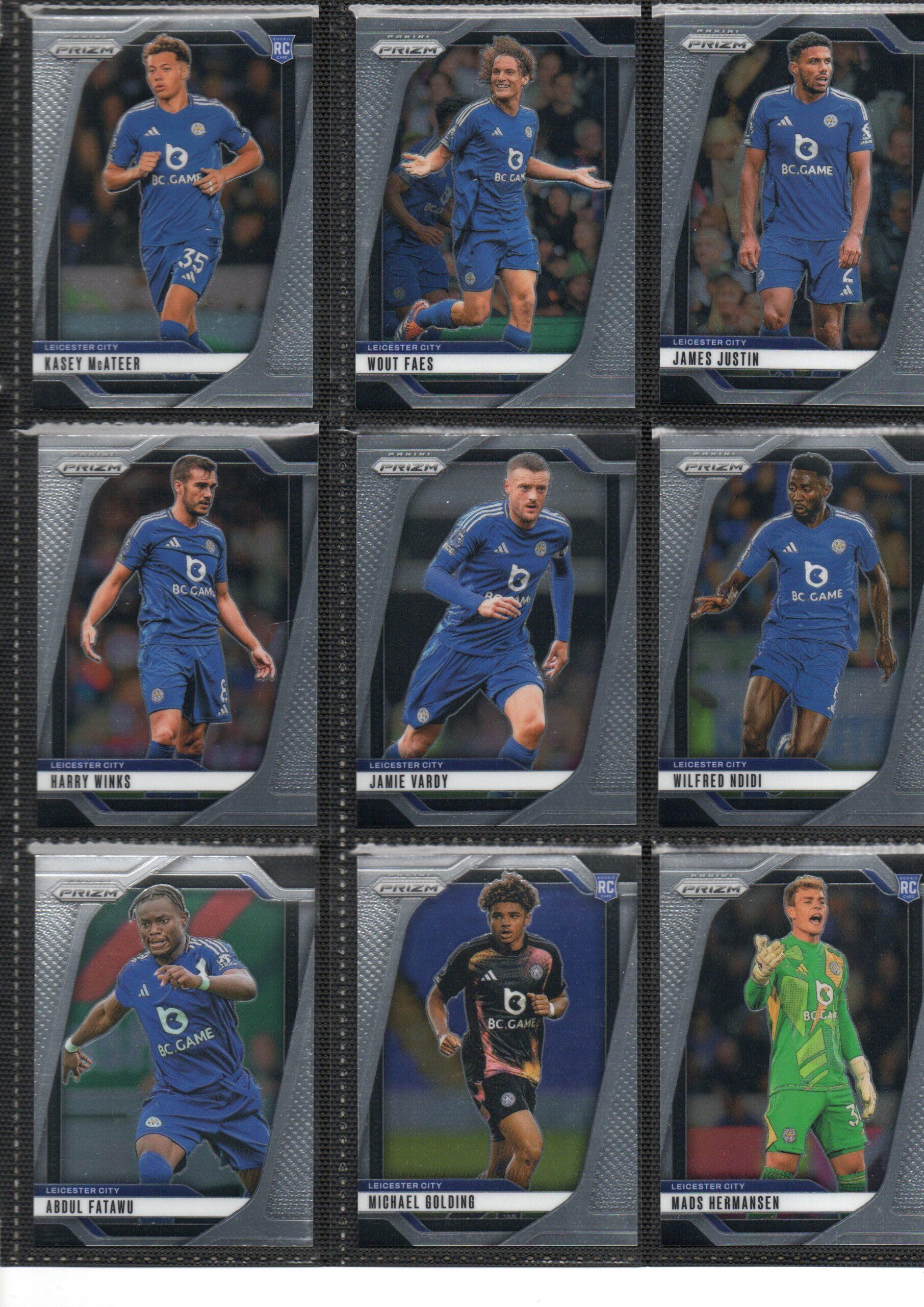 Complete Leicester City base card team set from the 2024-25 Panini Prizm Premier League collection.