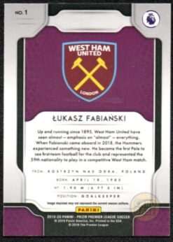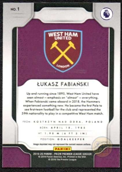 Lukasz Fabianski #1 West Ham United Base Card – 2019-20 Panini Prizm Premier League
