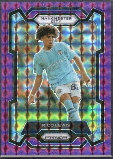 Rico Lewis #10 – Manchester City 2023-24 Panini Prizm Purple Mosaic 15/140
