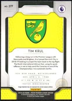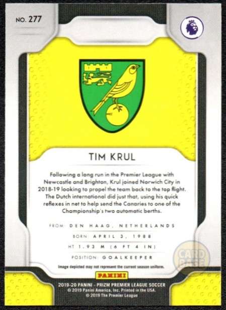 Norwich City Tim Krul base card from the 2019-20 Panini Prizm Premier League collection.
