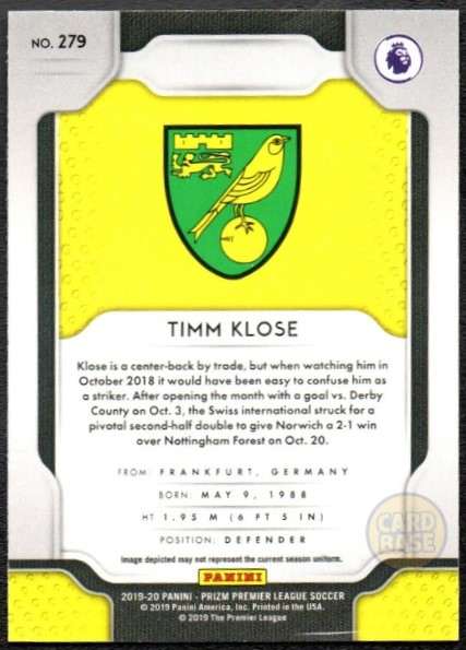 Timm Klose #279 Norwich City Base Card – 2019-20 Panini Prizm Premier League