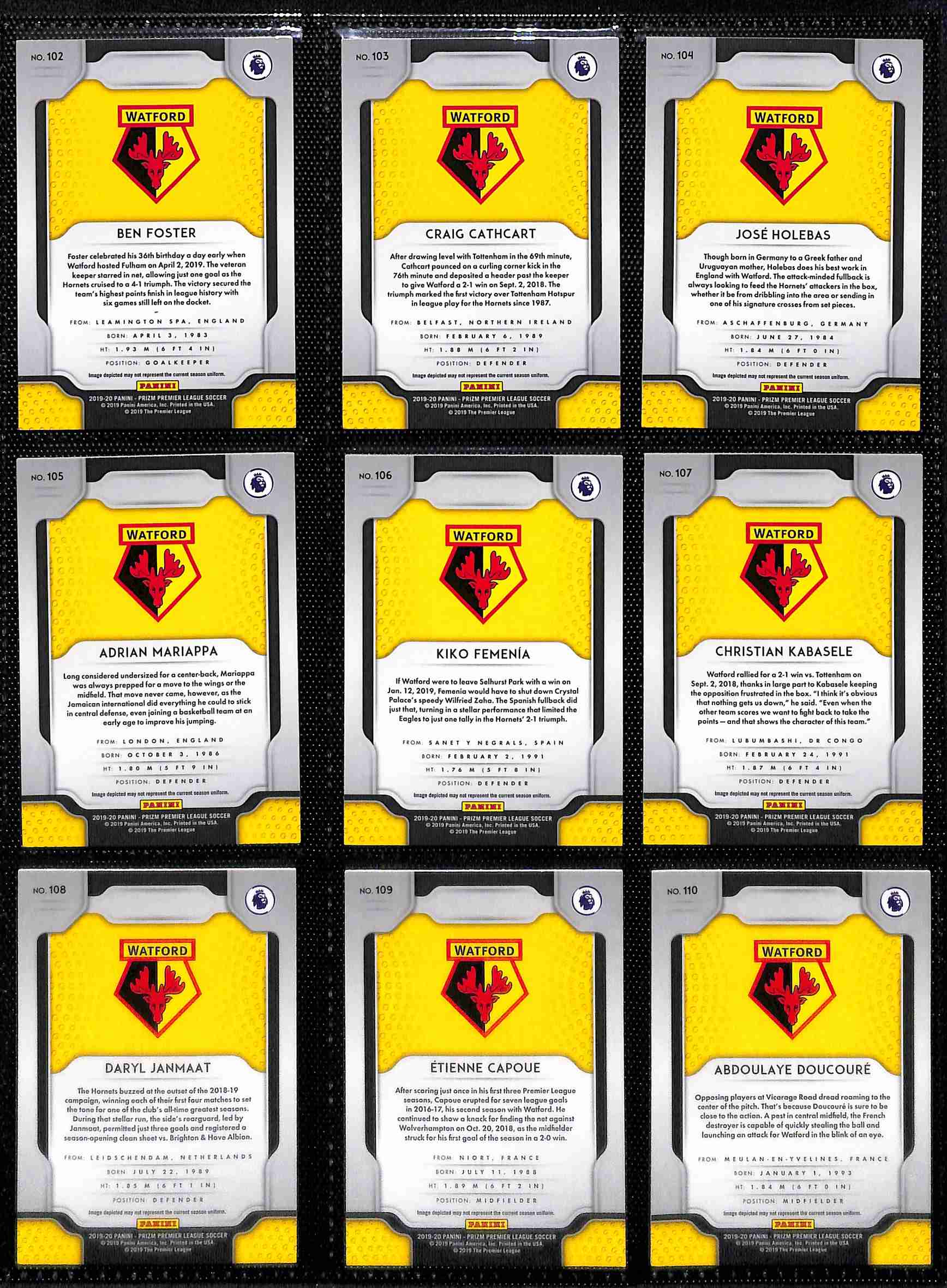 2019-20 Panini Prizm Watford Team Set