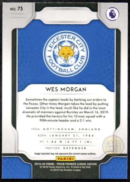 - Wes Morgan base card from 2019-20 Panini Prizm Premier League