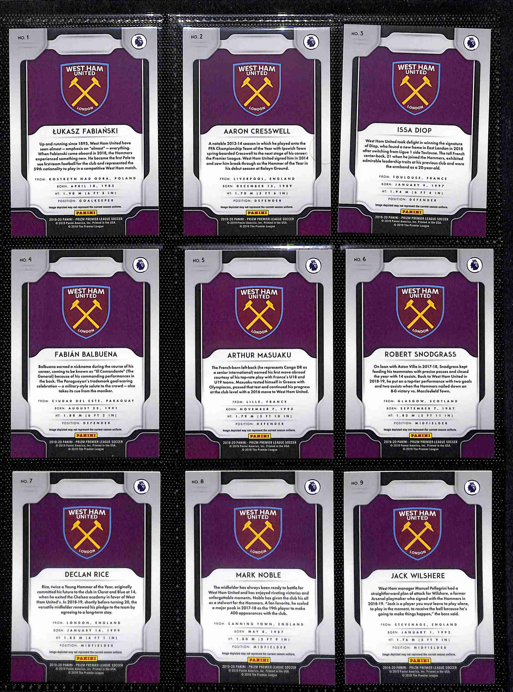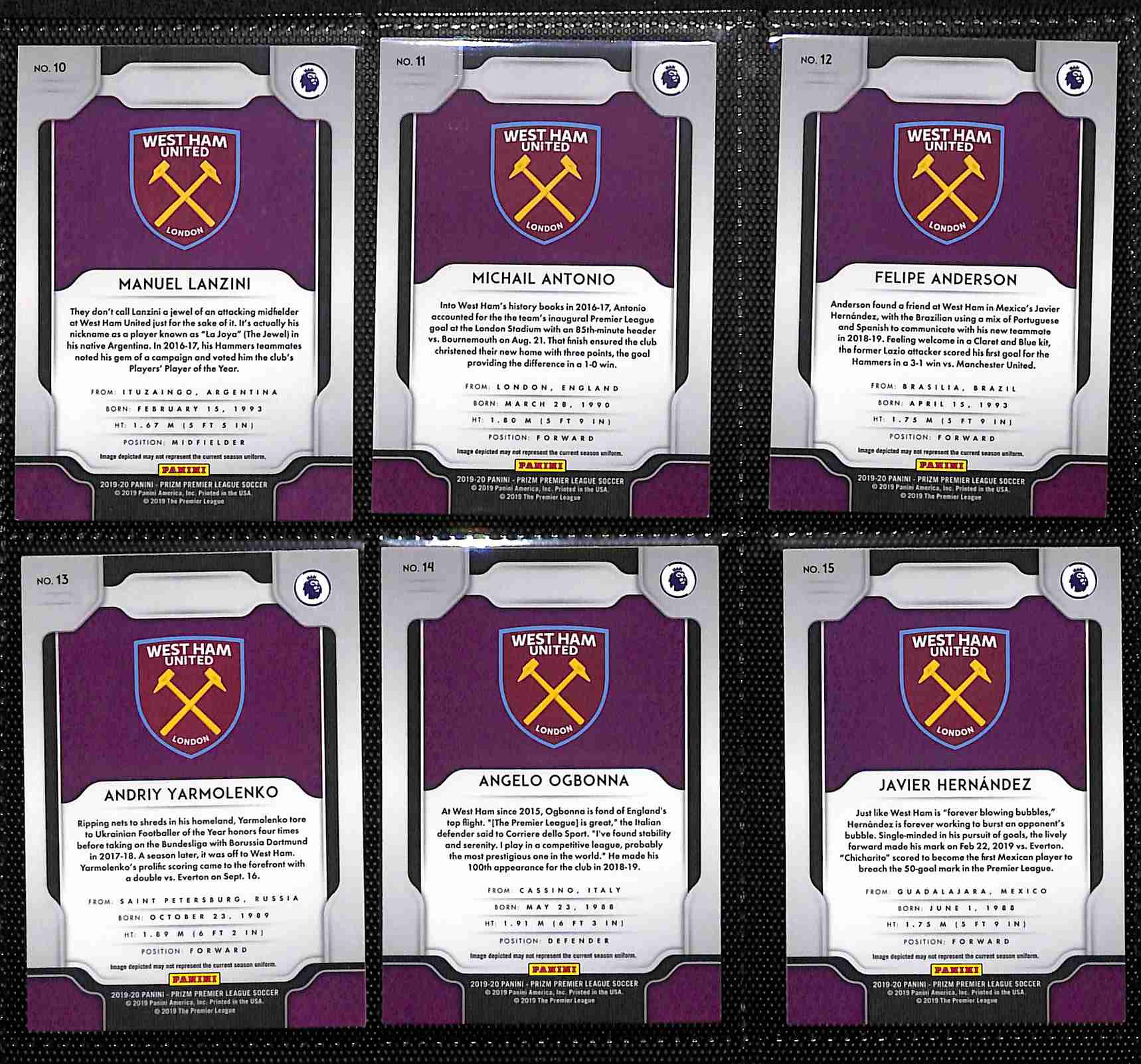 West Ham United 2019–20 Panini Prizm Premier League Complete Base Set
