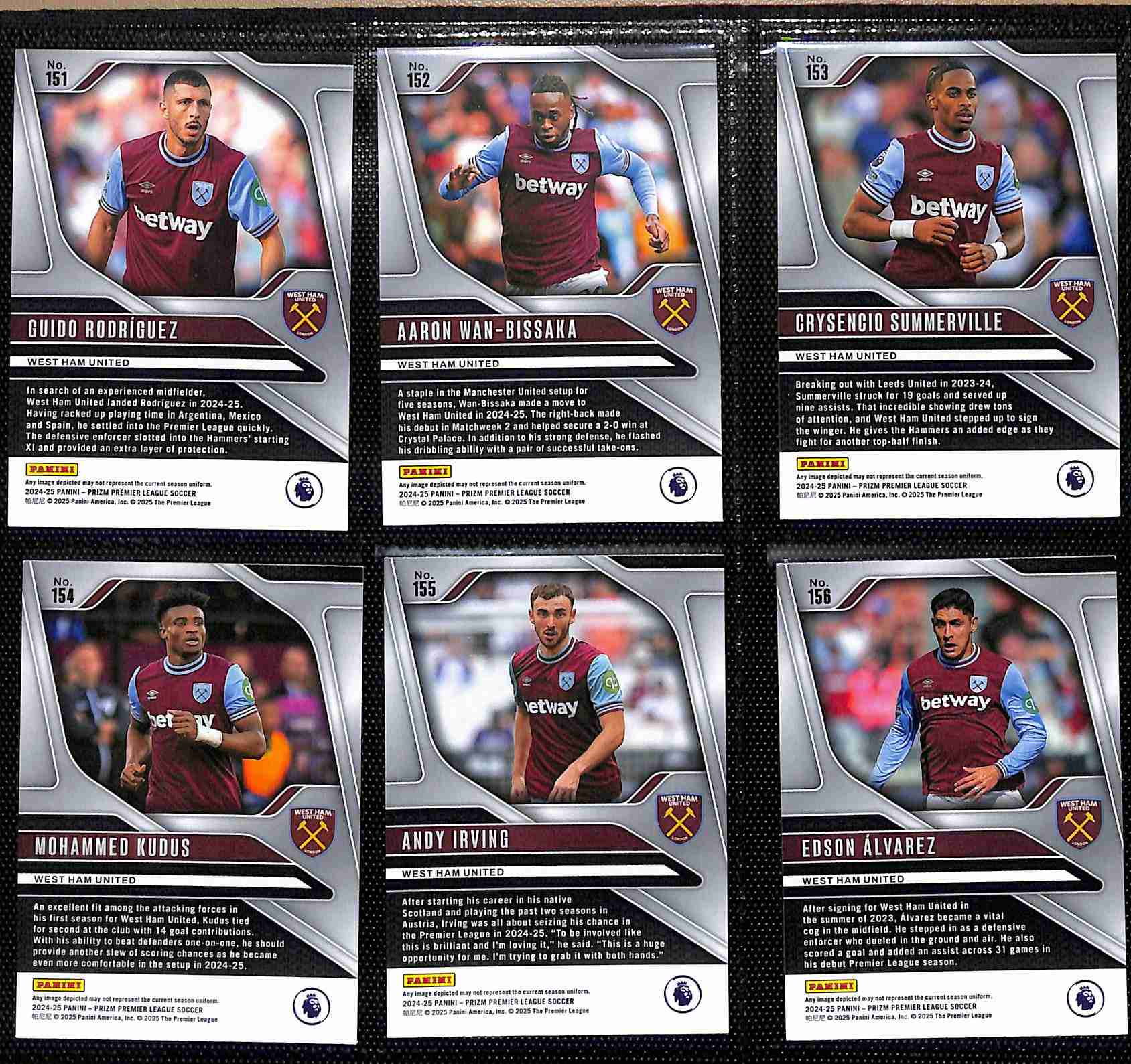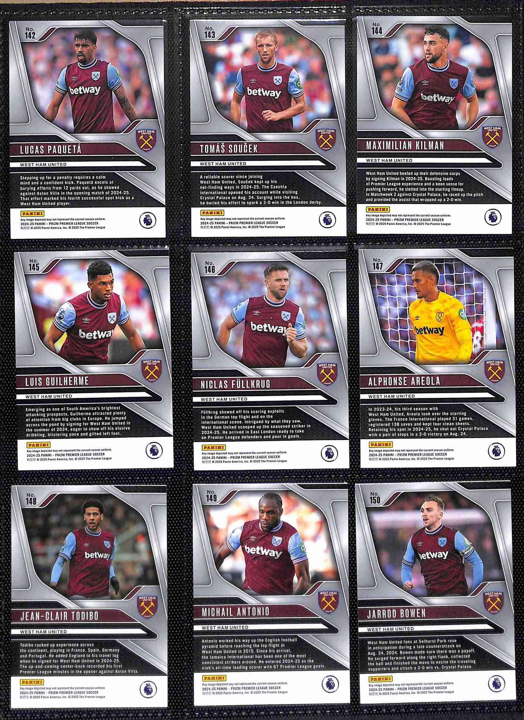 - Complete West Ham United base card collection from the 2024–25 Prizm series