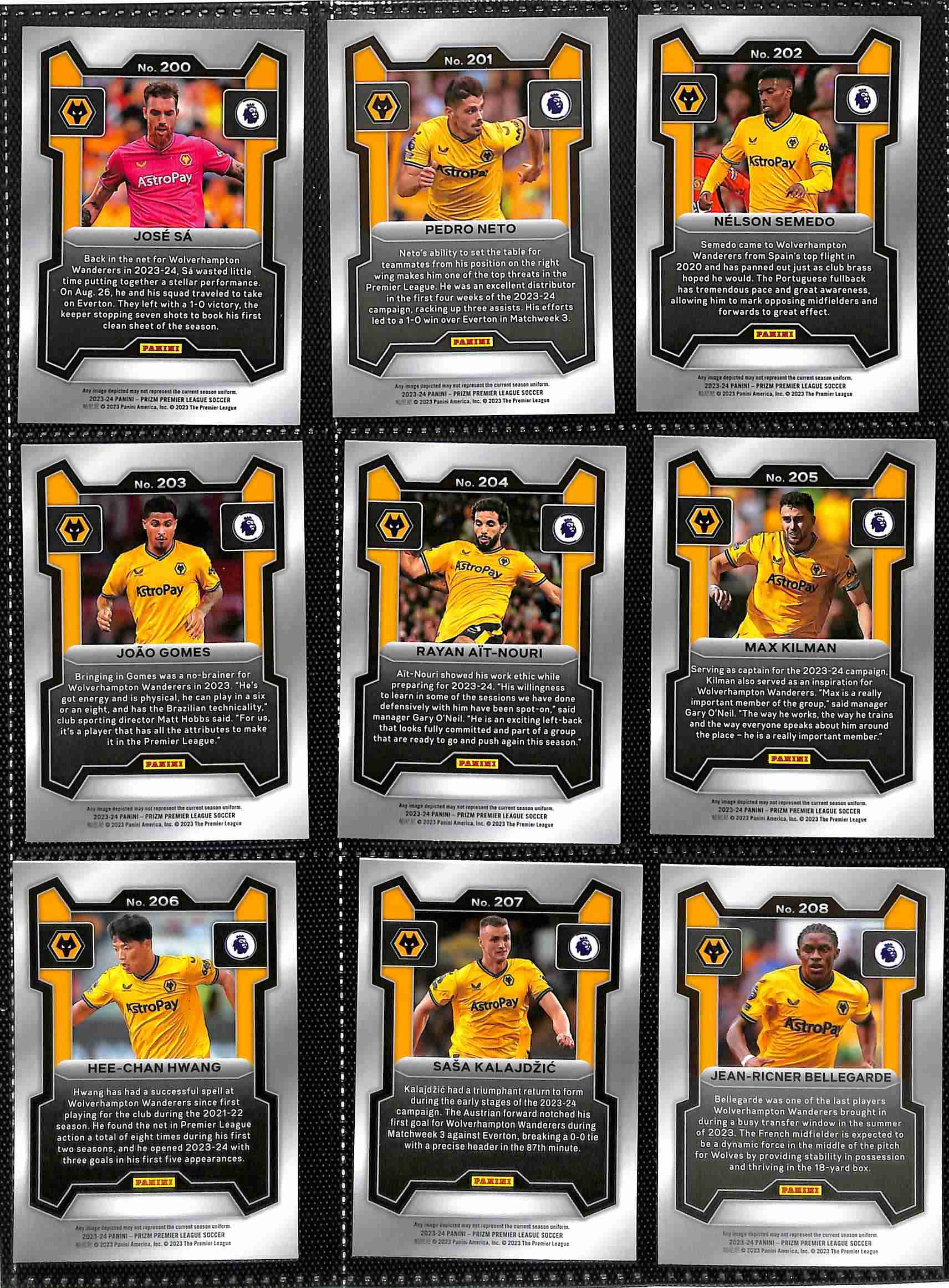 Wolverhampton Wanderers 2023–24 Panini Prizm Premier League Complete Base Set