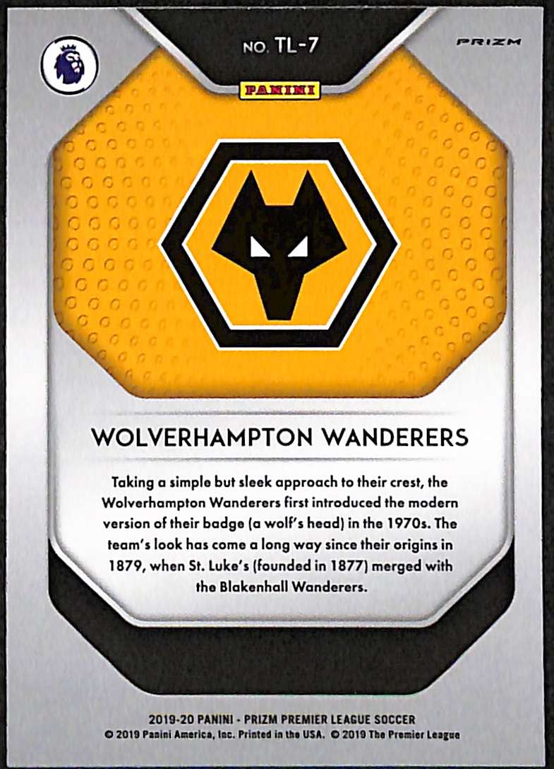 Wolves team logo card TL-7 from 2019-20 Panini Prizm Premier League